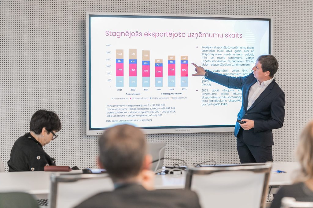 K.Rožkalns: “Eksports šobrīd piedzīvo lielus izaicinājumus, bet turpina būt centrālais nodokļu maksātājs un ekonomikas virzītājspēks. Šobrīd redzam, ka Latvija produktivitātē zaudē mazāk kā Lietuva un Igaunija, tomēr visas Baltijas valstis zaudē attiecībā pret ES. Latvija paliek mazāk konkurētspējīga eksporta tirgos līdz ar augošajām darba izmaksām, tomēr svarīgi atcerēties, ka eksportējošie uzņēmumi ir lielāki, stabilāki un labāki darba devēji, jo jākonkurē pasaules tirgos par talantu piesaisti.”